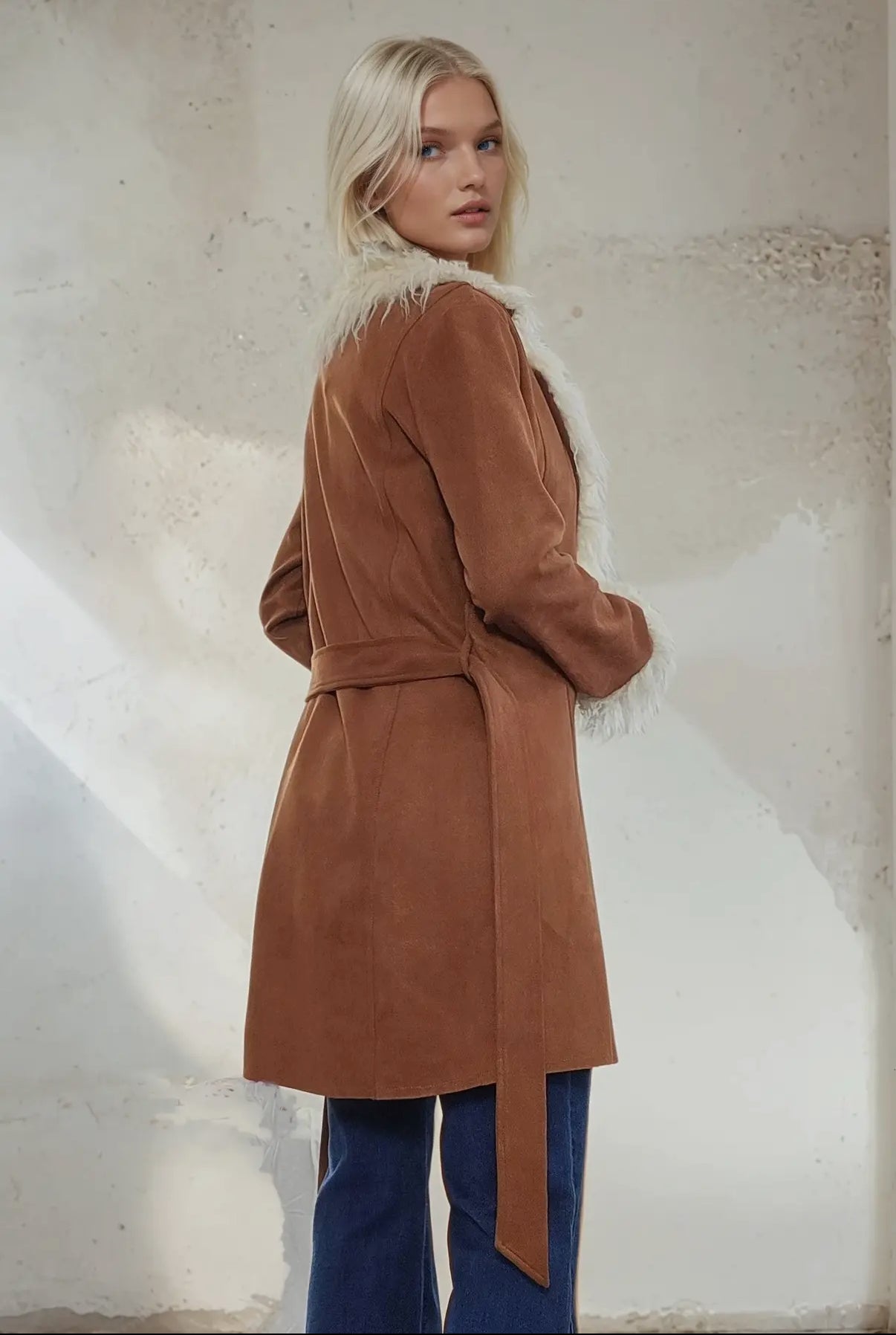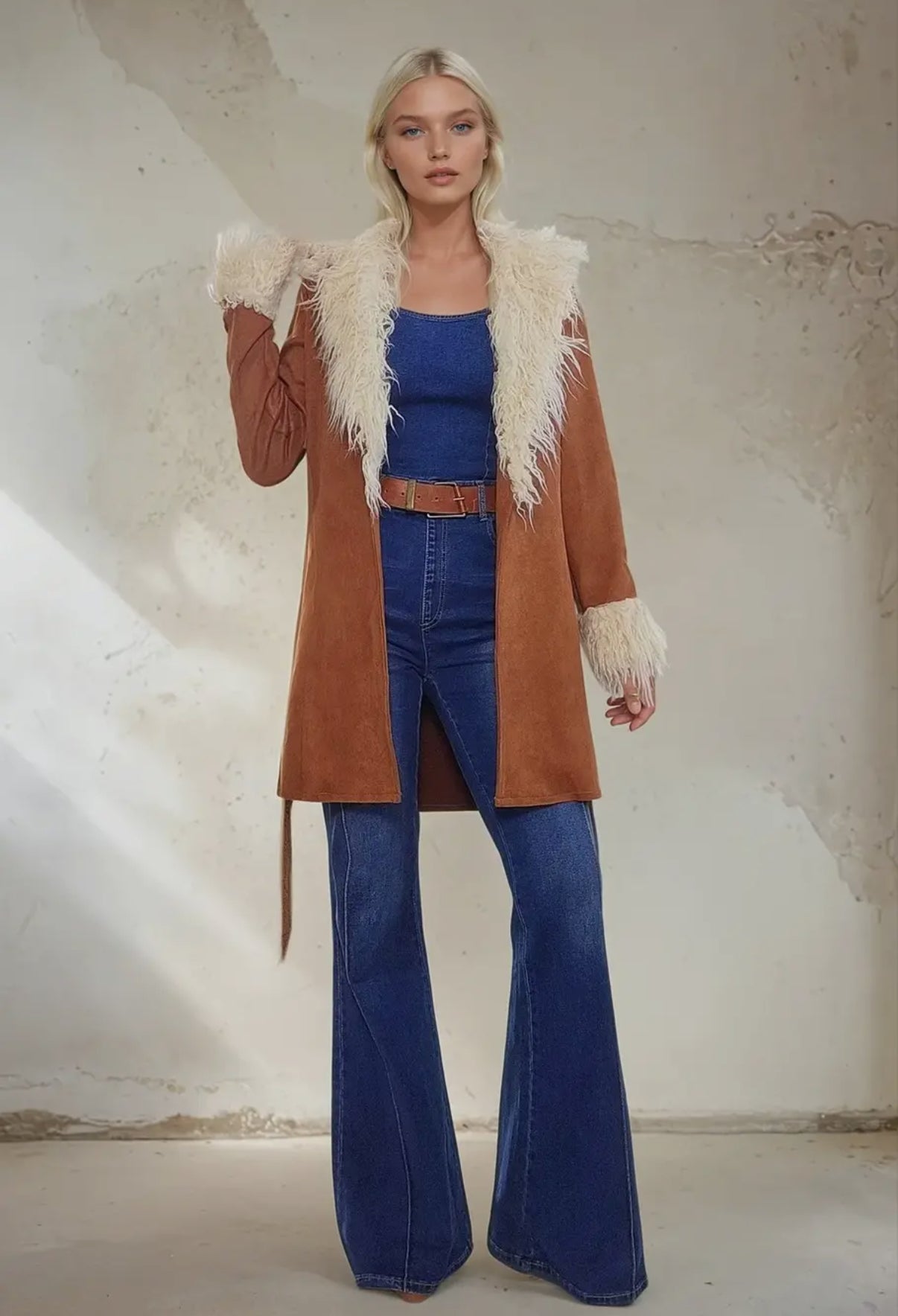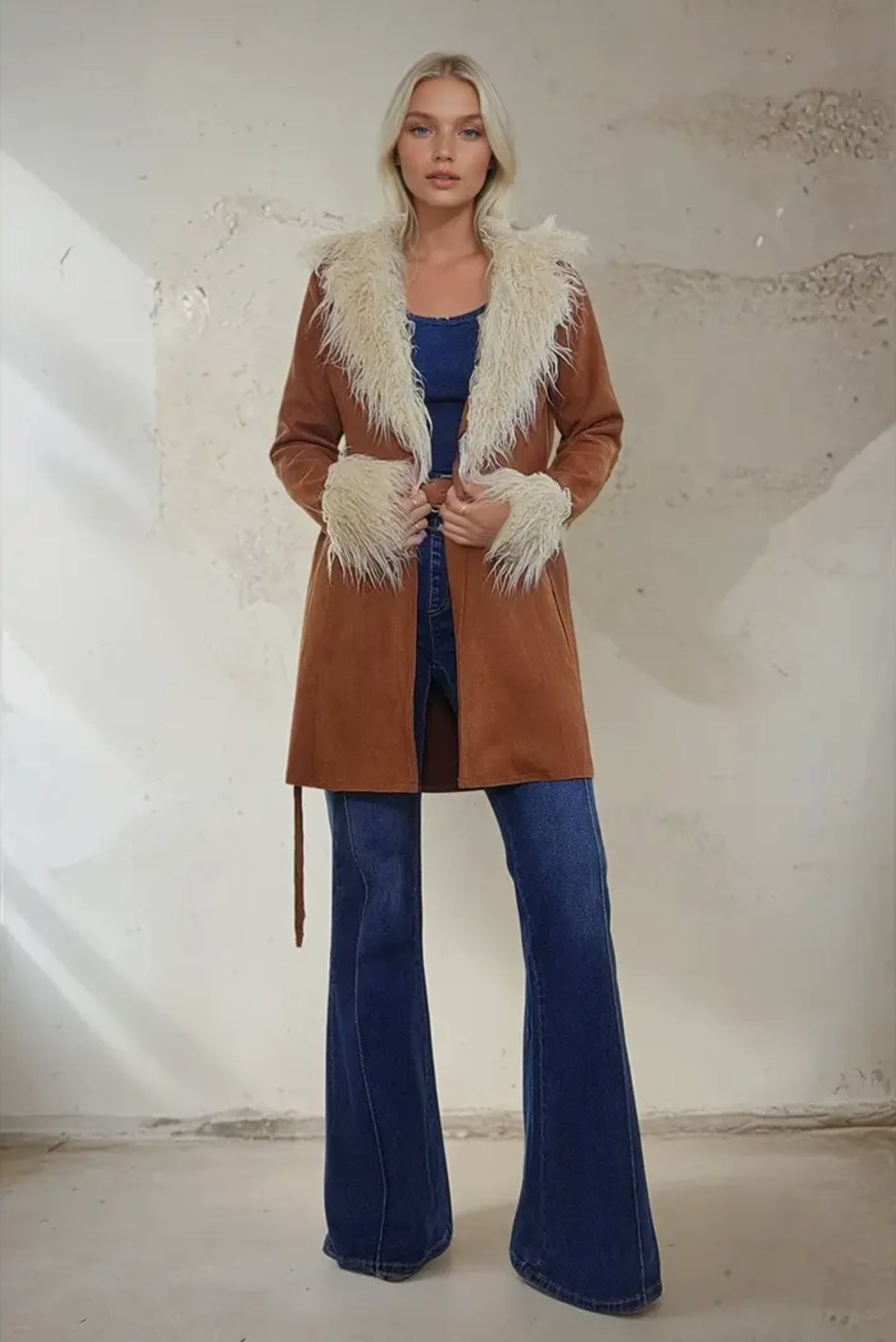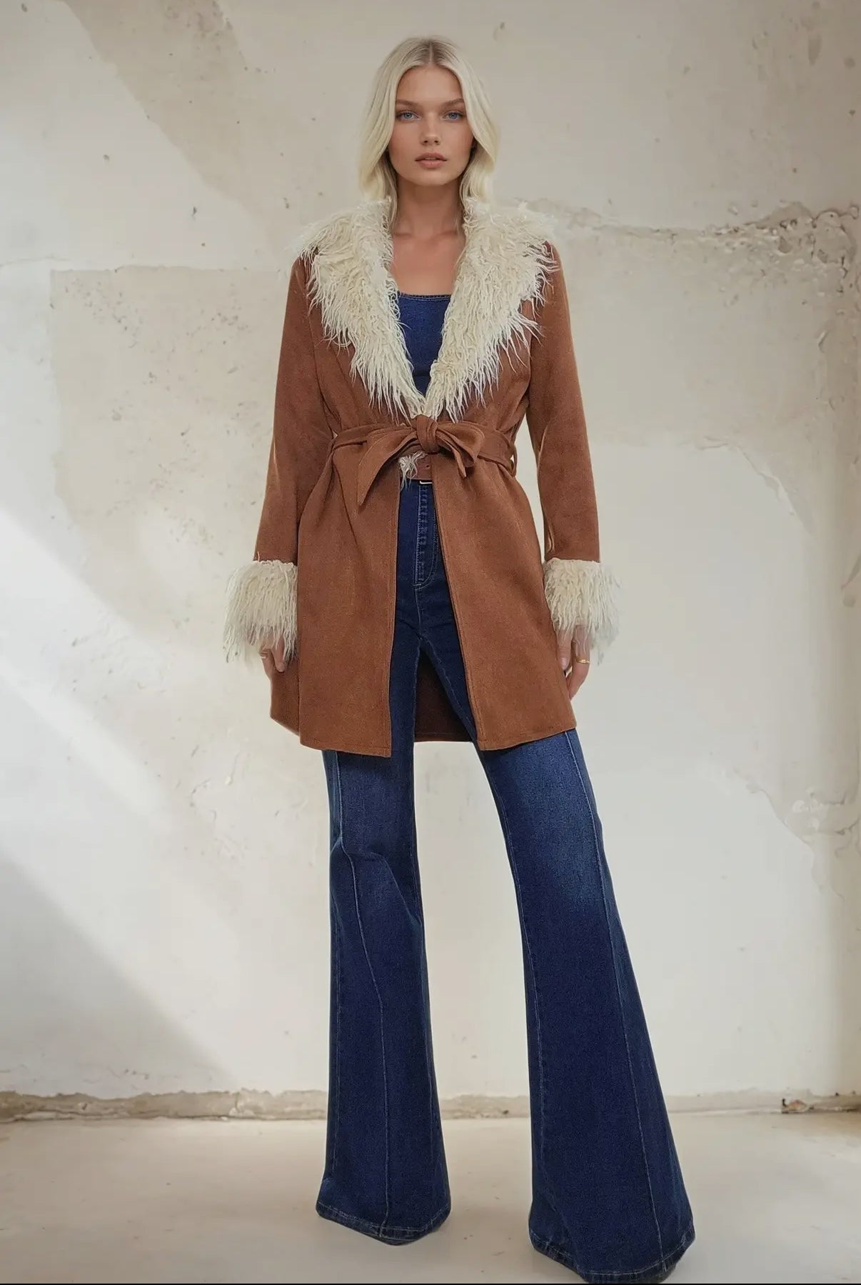 The Rhiannon Suede Coat is that effortless, witchy-cool layer that looks like it walked off a Fleetwood Mac album cover. Buttery faux suede, trimmed with soft shag at the collar and cuffs, gives you that iconic “I’m with the band” energy without trying too hard.