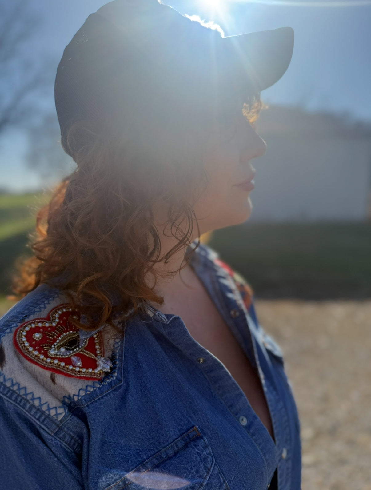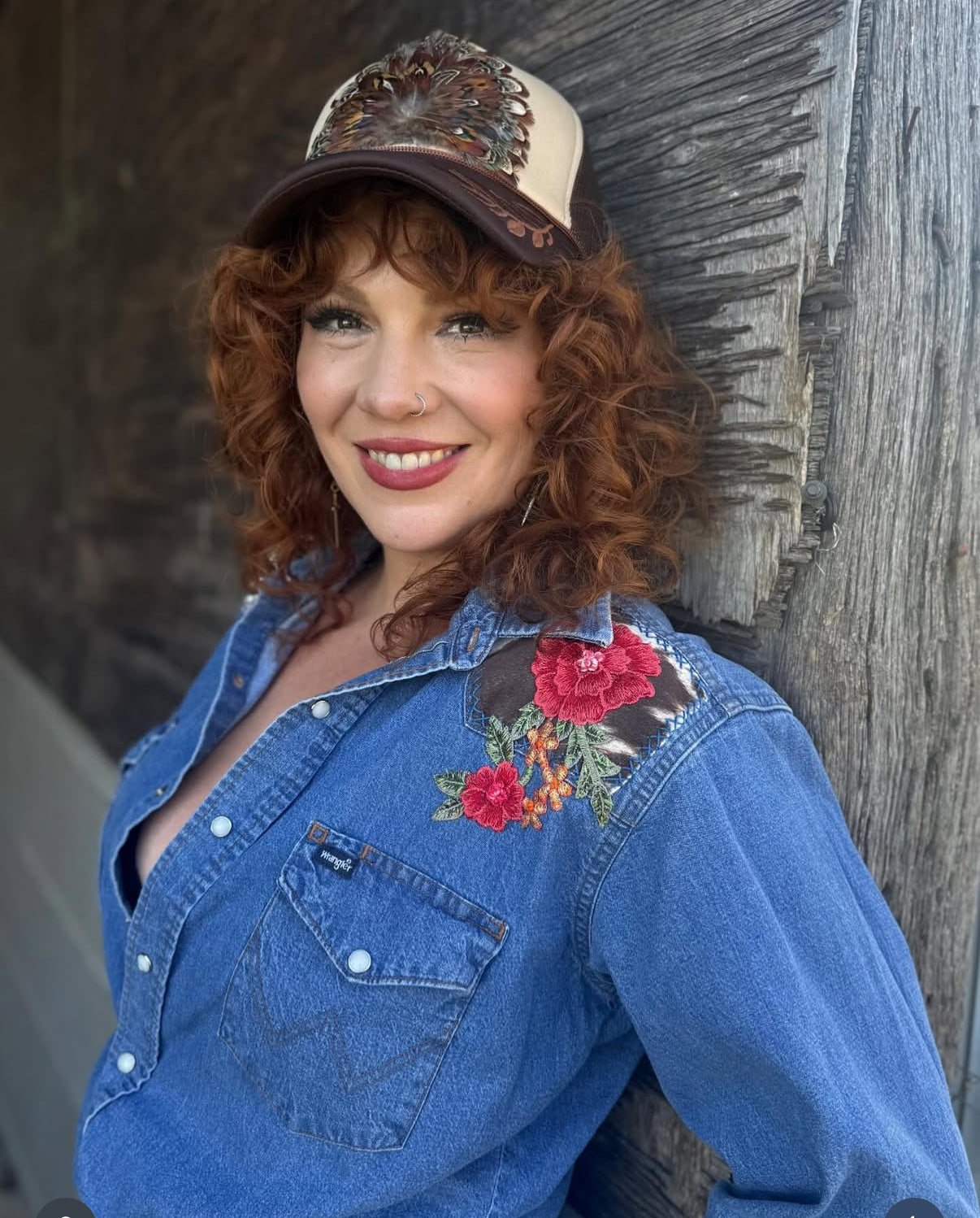 This one-of-a-kind vintage Wrangler denim top has been reimagined by Nashville artist Kim Buckingham exclusively for Rock-n-Boho. Each piece in this collab is transformed by hand, blending rugged Western heritage with bold, feminine artistry.